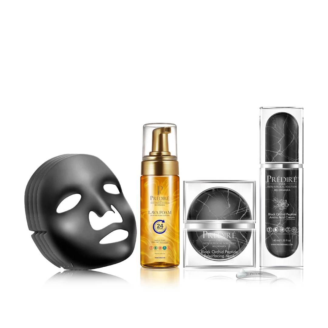 Black Orchid Peptide is the latest and most luxurious design within the Prédiré Paris line of skincare products. After years of researching and developing, our Scientists at Prédiré Paris have discovered the extraordinary power of the Black Orchid. Originally from Peru, this rare orchid increases its longevity by adapting to its environment. The Prédiré Black Orchid Peptide Resurfacing Mask helps to minimize the appearance of visible signs of aging and maintains a barrier on the skin.