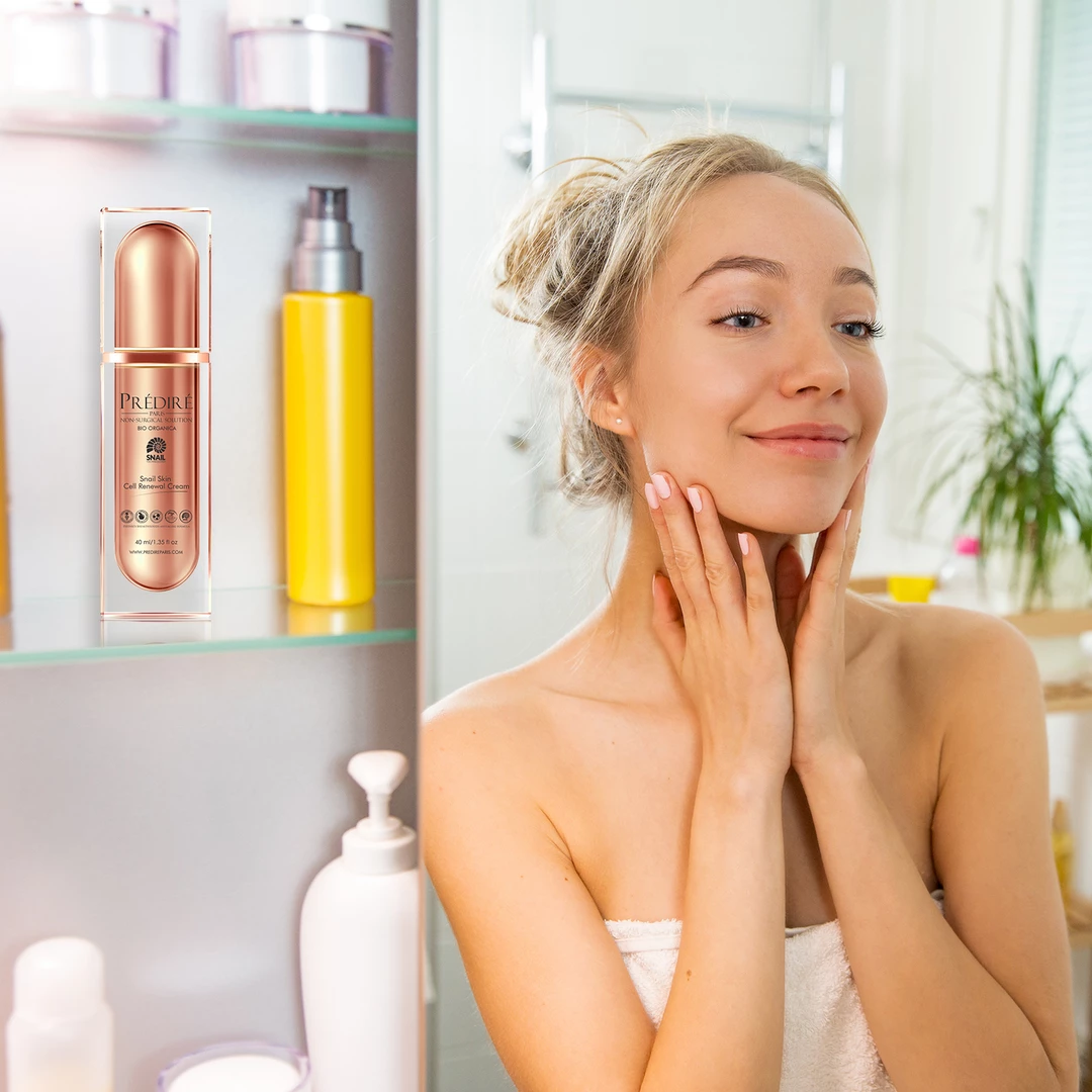 Predire Snail Skin Cell Renewal Cream is effective against anti-aging, anti-wrinkle, face restoration, reduces bags and dark circles under eyes. These little mollusks secrete a mucus that protects their exposed bottoms against bacteria, cuts, and UV Rays. And contains snail extract with natural plant extracts that tighten the skin, fix irregular skin tone, smooth wrinkles, and fix sun damage, the secret to youthful skin.